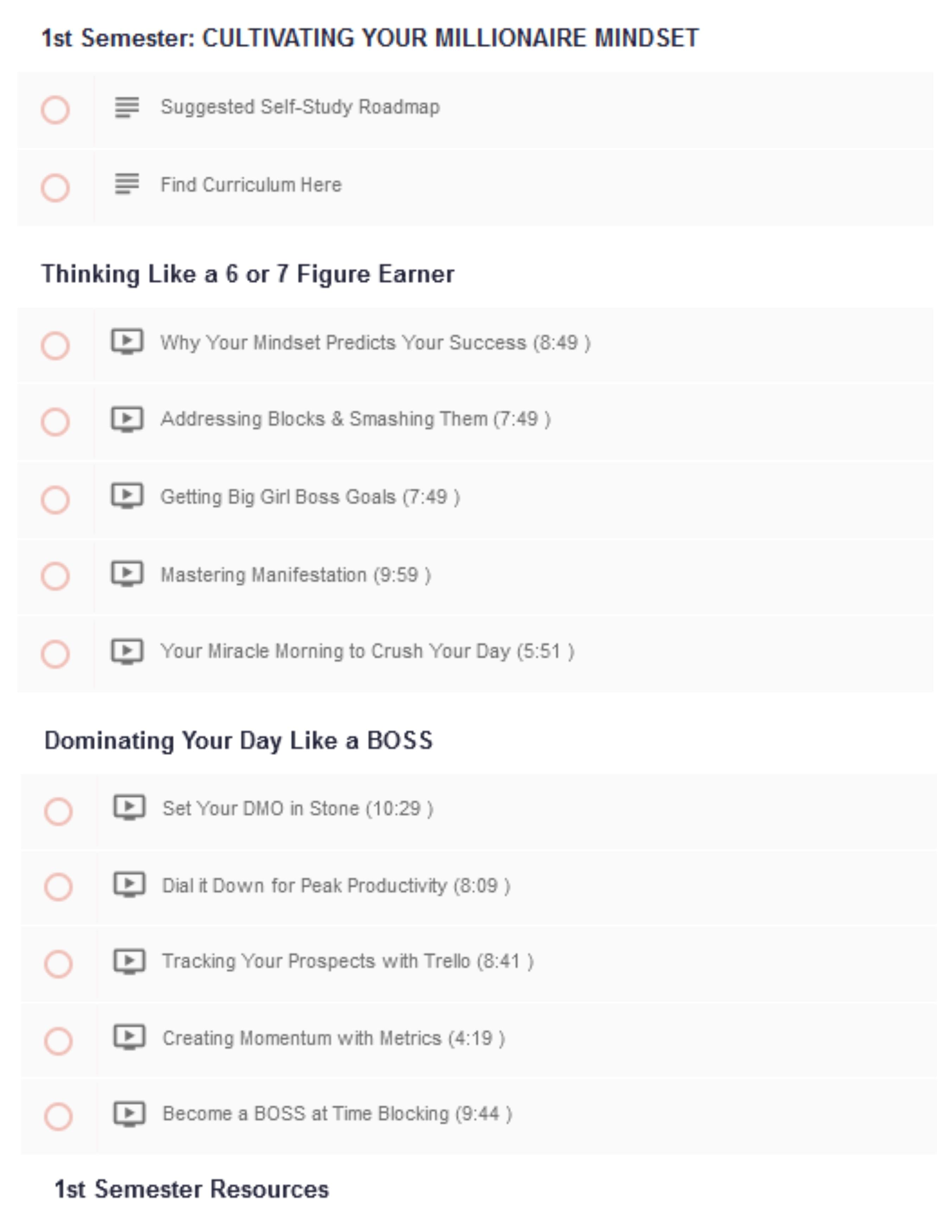 With our proven formula, you'll know EXACTLY what simple, results-oriented action steps you should be taking each week, following along her structured curriculum to get you to your goals at record speed.